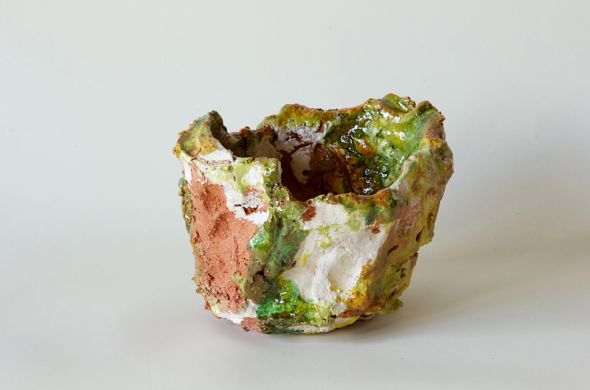 … j’ai toujours le souvenir des verts profonds des poteries japonaises oribé et ceux jetés violemment sur les flancs des pichets du Pré d’Auge. Au-delà même des artistes qui ont nourris mon travail, il y a les productions populaires de poteries de terres vernissées. Les pièces anonymes qu’elles soient d’Espagne ou du sud de la France. j’ai toujours près de moi cette séparation du jaune et du vert des plats a couscous de Guélala… le passage d’une couleur à l’autre, du fer au cuivre, qui fut par la suite aussi caricaturé que n'importe quelle frontière abusive. Emailler la terre comme on peut. Je me souviens de ces potiers marocains qui traitaient le plomb des batteries de voitures et qui en faisaient un émail vert et brun si riche, si fondu, coulant d’un bol à l’autre au flux des fusions. Partout dans le monde on retrouve cette obsession verte, qui par les hasards d’une base plus alcaline colore en bleu tout le moyen orient.