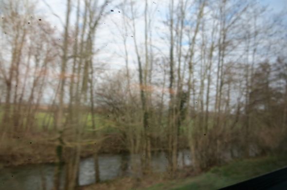 Entre deux temps de travail: Strasbourg et Paris; intervention passée et exposition à venir. Nous roulons entre 300 et 320 Kmh et venons de retrouver le mauvais temps que nous semblions avoir quitté en Alsace. Le paysage défile rapidement. Catherine y voit des chevreuils, aigrettes, cigognes et même arrive à distinguer quelques bergeronnettes. Nous avons visité beaucoup d’ateliers à Strasbourg et dans les environs. Celui de Céline et celui d’Arnaud, celui de Sylvain et de Gabrielle, celui de Michelle et celui d’Anne que je ne connaissais pas encore.Tant de lieux d’intimité, tant de petits morceaux du monde où se concoctent les histoires, où se préparent quelques bouleversements discrets. Nous y sommes toujours accueillis avec beaucoup d’attention et respectons comme il se doit ces lieux où s’expriment toutes les fragilités. Tellement de questions, et tellement de chaleur humaine, tellement de doutes dits, compris parce que partagés. L’amitié comble assurément les mises en difficultés et les mots emplissent les fissures de toutes les incertitudes. Nous savons que nous sommes entre nous. Entre ceux qui savent les affres, au-delà des images, protégés par nos propres experiences.