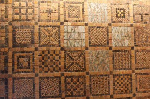 On voulait y aller depuis que Liz nous avait offert le catalogue relatif au pavage du XII-XIII ème siècle, découvert dans les fouilles de la chapelle … les pavés sont remarquables. Même si le choix d’une présentation verticale (pour les mettre hors de danger) reste perturbant. Toutes les techniques de décorations alors connues y sont utilisées. L’image du chantier en cours de fouille aperçue dans ce catalogue avait été le point de départ de l’installation avec Anne Verdier en décembre dernier.