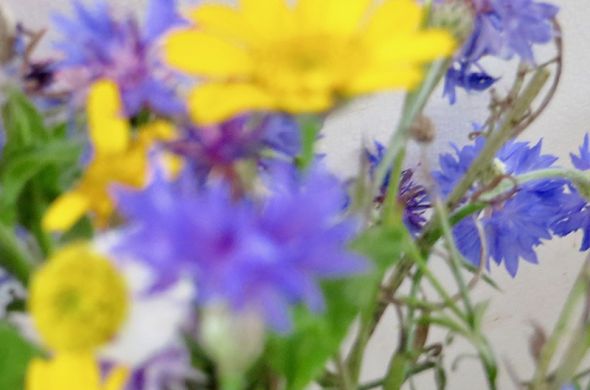 Quelques bleuets, les derniers chrisanthèmes comestibles et deux ou trois cosmos...